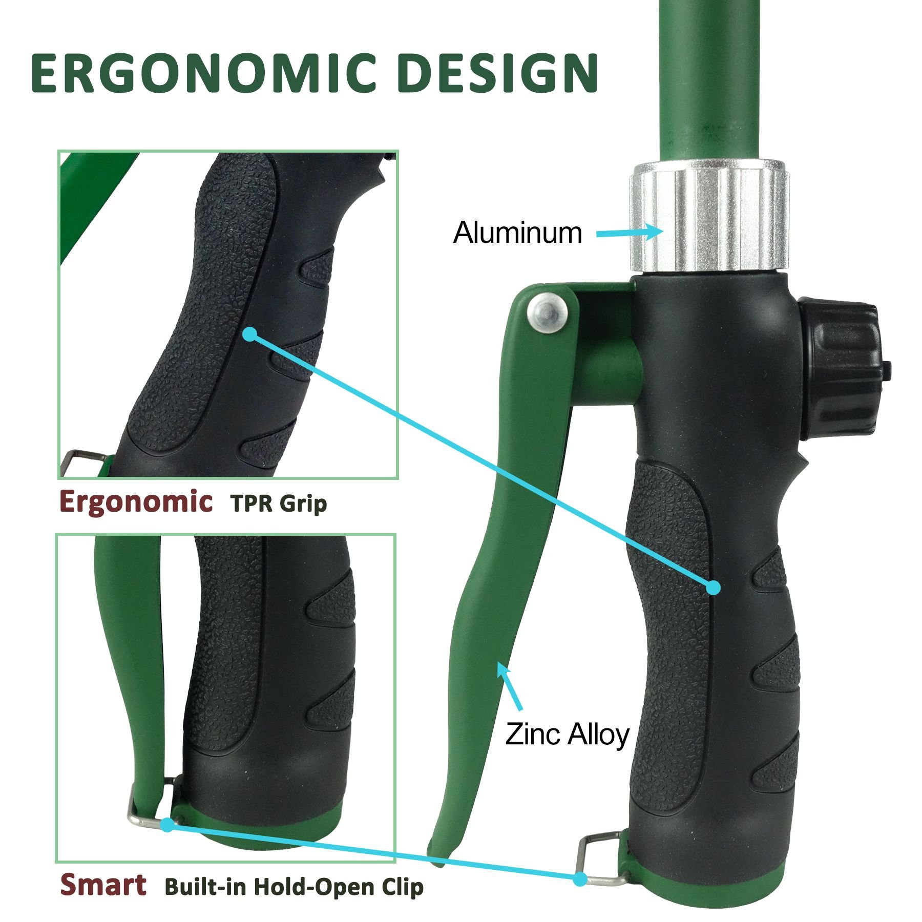 Ratcheting Head: Ratcheting head design means you can adjust the angle of the head to direct the water accurately, even in awkward spots.