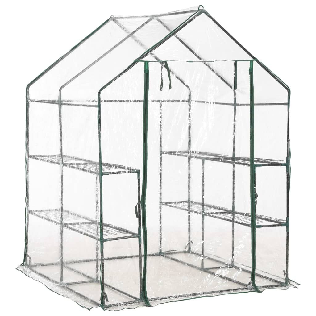 This greenhouse is structured with rust-resistant sturdy steel frame and PVC film; which ensures superior durability and for long-lasting use. Constructed with 8 wired shelves (4 on each side); this greenhouse provides ample space for your sprouting plants; blooming flowers and fresh herbs and vegetables. The transparent plastic cover allows sunlight to reach the flowers and plants; also you can monitor your plants all the time. Designed with zippered roll-up door; it ensures well air circulation and easy access to your plants.