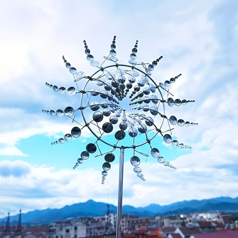 30cm/11.81in Courtyard Garden Lawn Outdoor Decoration, Unique Wind Collector Magic Kinetic Energy Metal Windmill Spinner Solar Wind Catcher